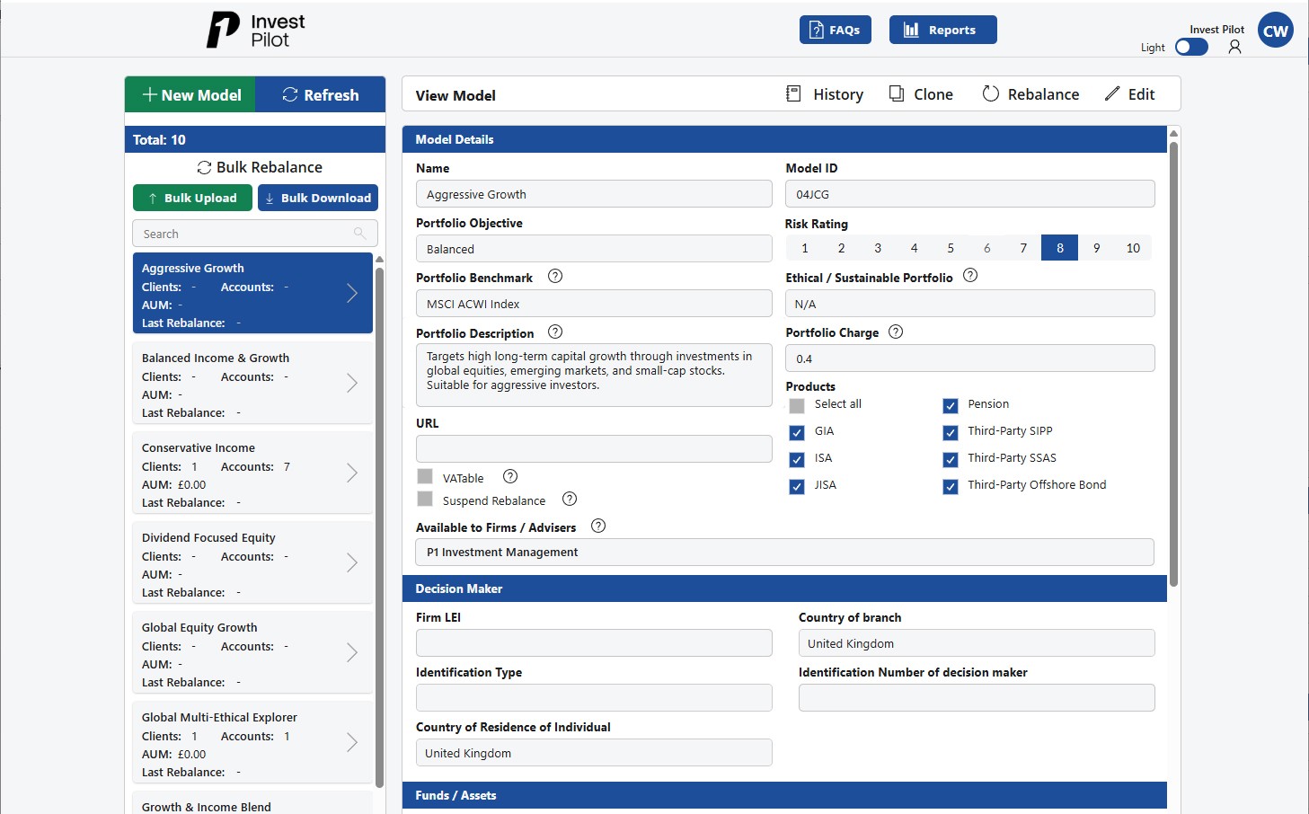 Create model portfolios, perform bulk rebalancing across multiple clients, and adjust strategies in minutes, not hours. Investment managers like Dan Minett at 5 Horizons praise how "quick and efficient" portfolio management becomes with Invest Pilot.